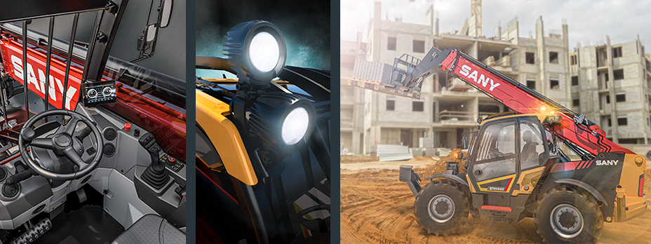 Bereits ab Werk sind alle SANY Teleskoplader umfassend ausgestattet und beweisen sich so als leistungsstarke Universalmaschinen. Mit zahlreichen Optionen und Anbaugeräten lassen sie sich individuell konfigurieren – perfekt ausgestattet für die jeweiligen Anforderungen.