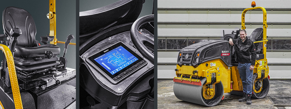Unkompliziert ist Trumpf – Die Fahrplattform ist ausgelegt für eine komfortable und sichere Bedienung. Intuitiv lassen sich alle wichtigen Informationen und Funktionen über das Touchscreen-Display abrufen. Die Multifunktions-Fahrhebel reagieren direkt auf die Vorgaben des Bedieners und erlauben so ein entspanntes und sicheres Arbeiten. Die Entkoppelung des Rahmens von der Maschine gewährleistet ein ermüdungsfreies, konzentriertes Arbeiten und die Eco-Stopp-Funktion schaltet die Maschine bei Nichtgebrauch automatisch ab. Weil Bedienerkomfort gleichzusetzen ist mit Produktivität, gehen die SANY Tandemwalzen auch hier mit gutem Beispiel voran: Sitz und Armlehne sind individuell verstellbar, zudem ist der Fahrersitz inklusive des zweiten Fahrhebels seitlich verschiebbar.